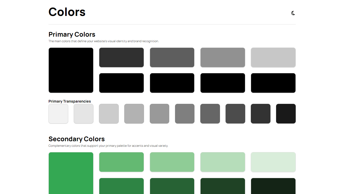 A sophisticated, interactive style guide component that provides instant access to your complete design system including color palettes, typography scales, and reusable UI components. This professional interface serves as the central hub for designers and developers to explore, reference, and implement consistent brand elements, featuring dark/light mode toggles and copy-ready values that streamline workflow and…
