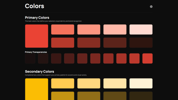 A sophisticated, interactive style guide component that provides instant access to your complete design system including color palettes, typography scales, and reusable UI components. This professional interface serves as the central hub for designers and developers to explore, reference, and implement consistent brand elements, featuring dark/light mode toggles and copy-ready values that streamline workflow and…